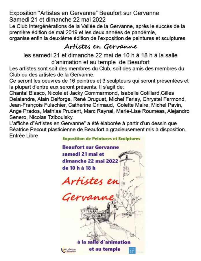 Artistes en Gervanne , deux lieux d’expositions à Beaufort les samedi 21 et dimanche 22 mai