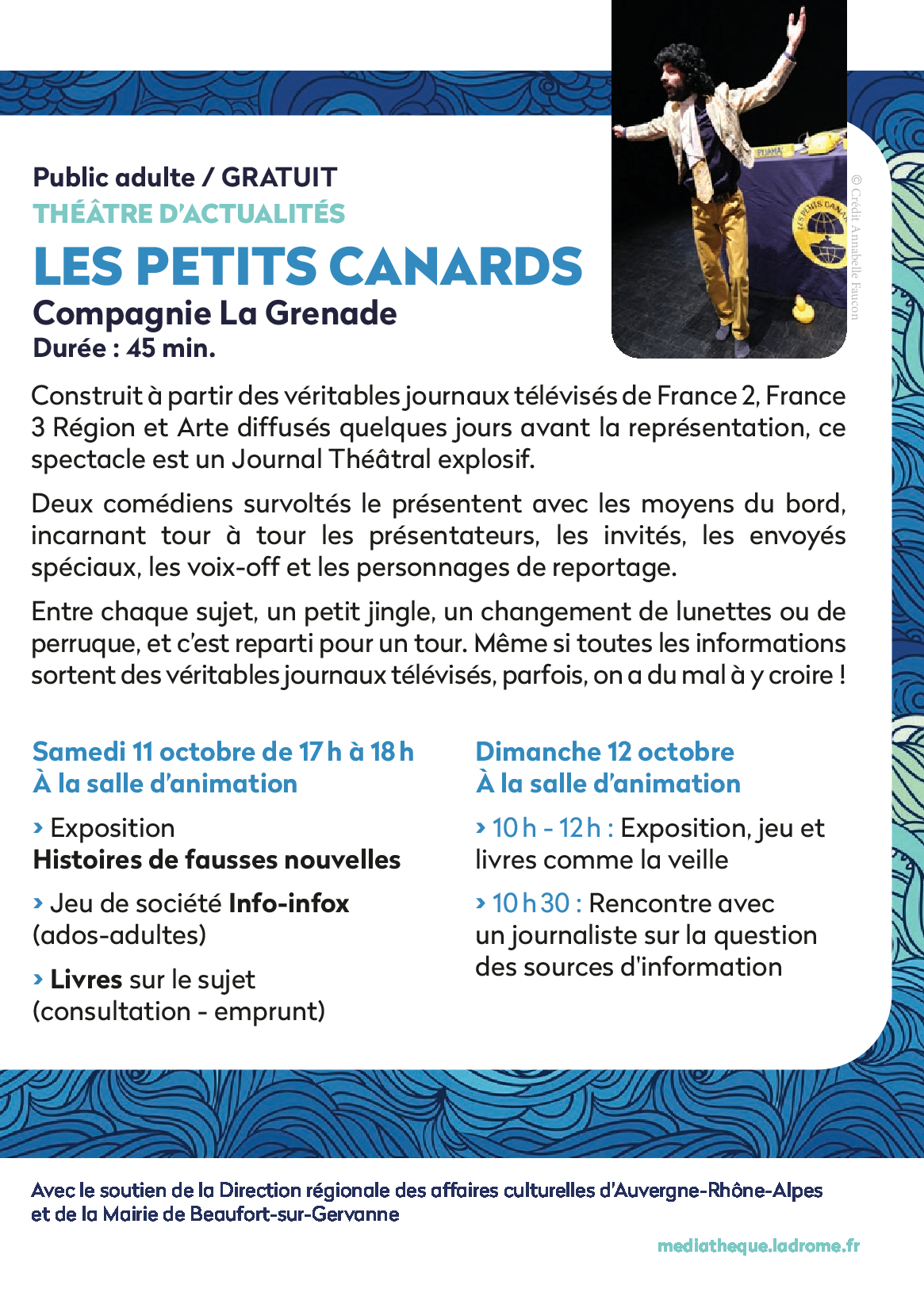 La bibliothèque de Beaufort vous propose un spectacle, une exposition, un jeu, des livres. Tout sur les thèmes de l’information et des fausses nouvelles. Sérieux, mais humour garanti !