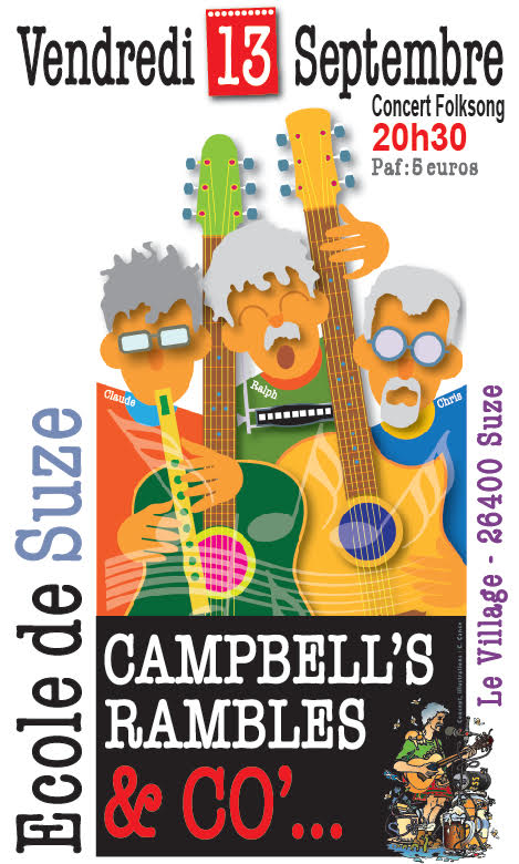 Campbell’s Rambles & Co est un trio local. Rambles veut dire divaguer : en se promenant en montagne, ou en radotant… Préparez-vous donc à interrompre des explications de texte de notre apiculteur gervannais frécossais, qui présentera son parcours de vie de manière « anecdotale » et « humorouse » à travers une heure et demie de ses chansons préférées.